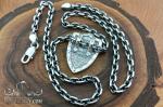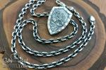 Цепочка выполнена в якорном плетении с гранями: звенья аккуратно огранены, что усиливает блеск и добавляет динамику отражений. Конструкция обеспечивает комфорт при ношении и надежность. Чернение подчеркивает форму каждого элемента и придает украшению выразительный, брутальный характер. Замок удобен в использовании и гармонично сочетается с общим дизайном.